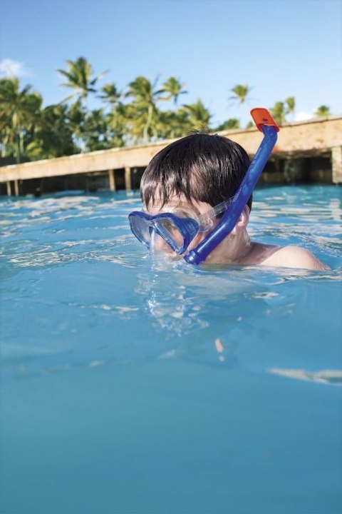 Idealne akcesoria do podwodnych zabaw Twojego dziecka możesz mieć już teraz na wyciągnięcie ręki. Zaopatrz swoją pociechę w ten wyjątkowy zestaw do nurkowania, który zapewni mu niezapomnianą zabawę podczas letnich dni. Zestaw ten przeznaczony jest dla dzieci w wieku 3-6 lat. Maska jest wykonana z soczewek chroniących przed promieniami UV. Ma również miękką otoczkę wokół maski i wygodnie przylega do twarzy dziecka zapobiegając przedostawaniu się wody do okularów. Na głowie znajduję się również regulowany pasek, który możesz odpowiednio dostosować do głowy twojego dziecka. Zapewnia ona również stabilność podczas podwodnych przygód. Miękkie płetwy, które nie zsuwają się ze stóp i idealnie pasują na rozmiar 24-27. Rurka wyposażona jest w technologie suchej fajki dzięki czemu woda nie przedostaje się do środka.