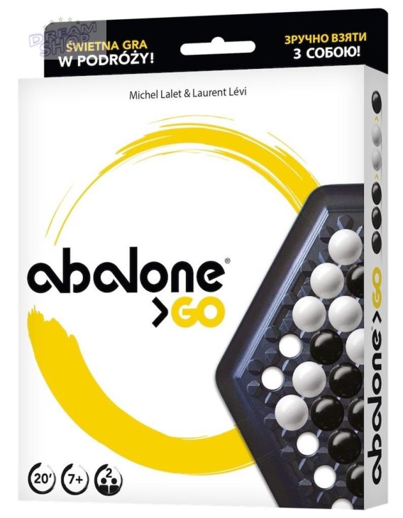 Abalone GO to specjalna, kompaktowa wersja popularnej dwuosobowej gry logicznej w pełni dostosowana do tego, żeby zabrać ją ze sobą, gdzie tylko zechcesz! Elementy zostały pomniejszone, a praktyczna nakładka na planszę pozwala na zapisanie rozgrywki i przeniesienie zawartości bez ryzyka jej przemieszczenia.