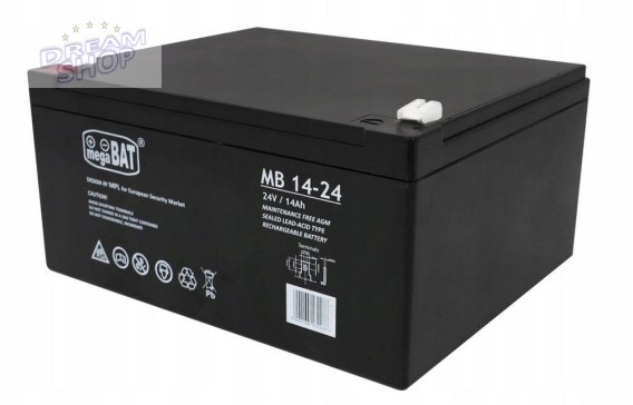 - Napięcie nominalne: 24 V - Pojemność: 14 Ah