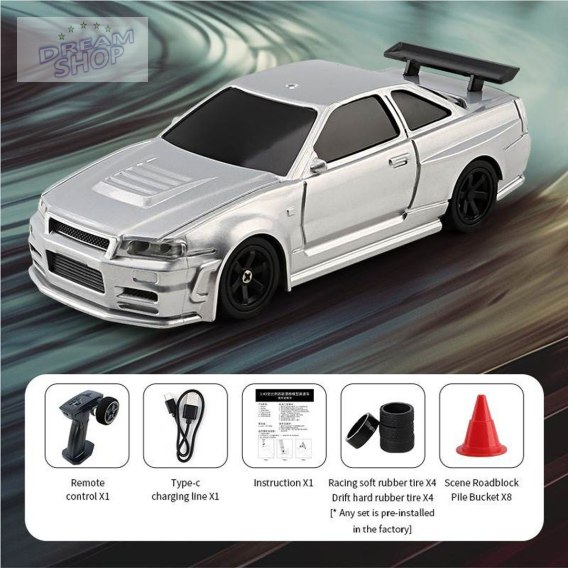 Zdalnie sterowany pojazd do driftu dla młodzieży od czternastego roku życia. Pojazd oferuje emocjonujące doświadczenia z jazdy i wykonywania efektywnych manewrów. Autko wykonano z trwałych materiałów, odpornych na uderzenia. Pojazd posiada napęd na cztery koła, jeździ we wszystkich kierunkach, driftuje. Może osiągać prędkość do 15 km/h. W zestawie znajdują się wymienne opony. Model płynnie przechodzi między hamowaniem, przyspieszaniem i zwalnianiem. Pojazd zasilany jest akumulatorem typu 3,7 V (w zestawie), pilot bateriami typu 4 x AAA 1,5V (brak w zestawie).