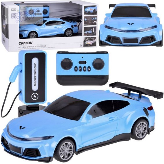 Elektryczny samochód wyścigowy o pięknym błękitnym kolorze sterowny na pilota zapewni godziny emocjonującej zabawy. Samochód idealnie odwzorowuje aktualnie najnowszą technologię samochodów elektrycznym na rynku samochodowym. Każdy mały fan motoryzacji na pewno będzie zadowolony mogąc mieć takie auto w swojej kolekcji. Auto zdalnie sterowane na pilota ze specjalną stacją ładującą jak prawdziwe pojazdy elektryczne. Magia kolorowych świateł i wielu fantastycznych funkcji które posiada ten pojazd zachwyci nie jednego dziecko.