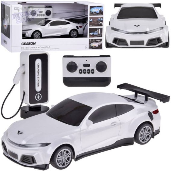 Elektryczny samochód wyścigowy o pięknym perłowym kolorze, sterowny na pilota zapewni godziny emocjonującej zabawy. Samochód idealnie odwzorowuje aktualnie najnowszą technologię samochodów elektrycznym na rynku samochodowym. Każdy mały fan motoryzacji na pewno będzie zadowolony mogąc mieć takie auto w swojej kolekcji. Auto zdalnie sterowane na pilota ze specjalną stacją ładującą jak prawdziwe pojazdy elektryczne. Magia kolorowych świateł i wielu fantastycznych funkcji które posiada ten pojazd zachwyci nie jednego dziecko.