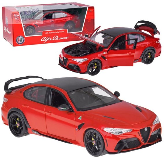 Alfa Romeo Giulia GTAm w skali 1:18 to wyjątkowa propozycja dla miłośników motoryzacji i kolekcjonerów. Licencjonowany model zachwyca precyzją wykonania oraz dbałością o najdrobniejsze detale, dzięki czemu prezentuje się jak prawdziwy samochód w miniaturze. Model posiada otwierane drzwi, maskę oraz bagażnik, co pozwala zajrzeć do realistycznie odwzorowanego wnętrza i komory silnika. Solidna, metalowa karoseria nadaje mu autentyczny wygląd, a gumowe koła podkreślają sportowy charakter pojazdu, zapewniając jednocześnie trwałość i realistyczne wrażenia podczas prezentacji lub zabawy. Na szczególną uwagę zasługuje emblemat Quadrifoglio - zielona czterolistna koniczynka, symbol sportowego dziedzictwa i wysokich osiągów, który pojawia się wyłącznie na topowych modelach Alfa Romeo. To znak rozpoznawczy legendarnych aut wyścigowych tej włoskiej marki.