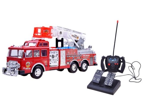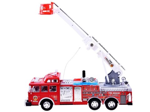Samochód strażacki sterowany za pomocą pilota jeździ do przodu do tyłu, skręca w prawo i w lewo. Jazdę samochodem można też kontrolować za pomocą pedał, które są odpowiedzialne za jazdę do przodu i do tyłu.