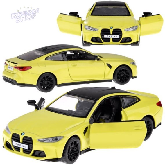 Po otwarciu drzwi auta metalowego BMW M4 usłyszymy odgłos klaksonu oraz dźwięk alarmu. Dociśnięcie pojazdu do podłoża uruchamia odgłos odpalania i pracy silnika. Efektom dźwiękowym towarzyszą światła z przodu i z tyłu samochodu oraz podświetlana deska rozdzielcza. Cała karoseria pojazdu jest metalowa, koła gumowe, podwozie wykonane jest z plastiku.