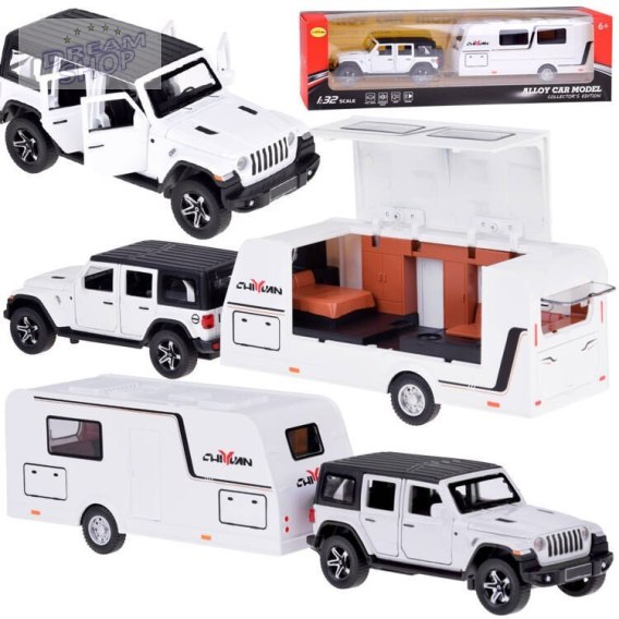 Auto terenowe + przyczepa kempingowa to idealna zabawka, która przeniesie Twoje dziecko w świat wakacyjnych przygód! Metalowy, terenowy samochód został wykonany z niezwykłą dbałością o detale, a świecące reflektory podczas jazdy dodają mu realistycznego wyglądu. Model w skali 1:32 doskonale odwzorowuje popularnego SUV-a, łącząc w sobie trwałość oraz wysoką jakość wykonania z tworzywa sztucznego.