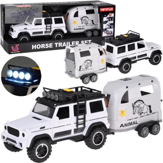 Auto terenowe z otwieraną przyczepą bukmanką + KOŃ Światło i dźwięk ZA5912