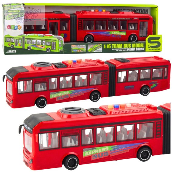 Autobus Przegubowy Otwierane Drzwi Światła Dźwięki Czerwony 1:16