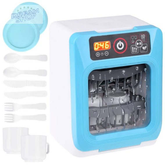 Zmywarka + naczynia i sztućce to realistyczna zabawka do zabawy w dom, restauracje, kawiarnie. Sprzęt bez, którego trudno wyobrazić sobie funkcjonowanie w kuchni. Każda mała Pani, Pan domu zapewne zainteresuje się wzbogaceniem swojej kuchni o ułatwiającą funkcjonowanie w kuchni maszynę do mycia naczyń.