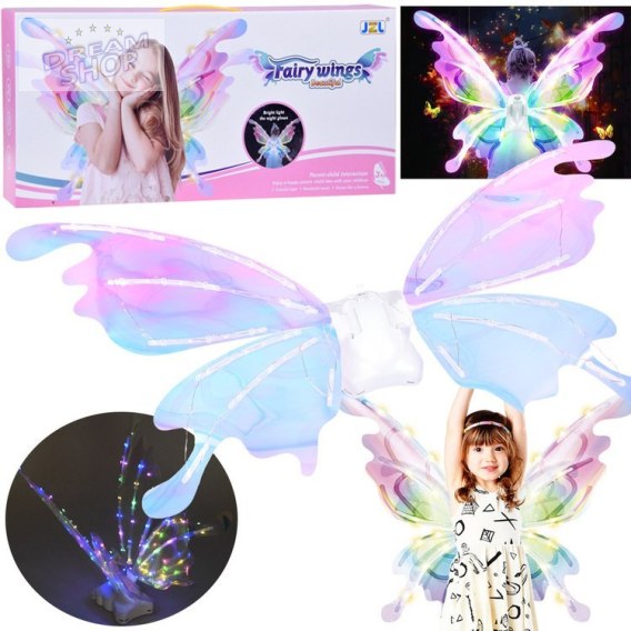 Kształtem przypominają olbrzymie skrzydła motyla, które w zależności od kąta padania światła - mienią się na wiele kolorów. Do podkreślenia efektu zostały wyposażone w oświetlenie led, co daje niesamowity efekt! Małe dziewczynki mogą poczuć się jak prawdziwe wróżki z krainy magii i czarów.