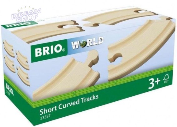 Krótkie łuki marki Brio to element pozwalający na rozbudowanie dotychczasowych torów kolejowych. Używamy ich, gdy chcemy nadać inny kierunek naszej trasie. Skieruj tory w prawo lub w lewo, w zależności od tego, jaki układ torowiska planujesz. Tory wykonane są z drewna bukowego.