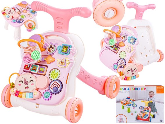 Chodzik Edukacyjny, Muzyczny Pchacz, Stolik BIAŁO-RÓŻOWY Przecena 1