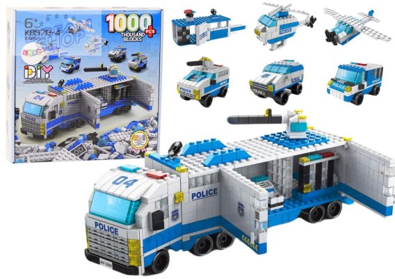 Zestaw klocków konstrukcyjnych, który pozwala na zbudowanie imponującej ciężarówki policyjnej oraz pięciu innych wzorów pojazdów policyjnych. Ten kreatywny zestaw 6w1 składa się z 1000 elementów i gwarantuje wiele godzin twórczej zabawy oraz nauki. Idealny dla dzieci, które pasjonują się policją i konstrukcjami z klocków.