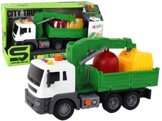 Ciężarówka Śmieciarka Z Dźwigiem Napęd Frykcyjny Dźwięki Zielona 1:16