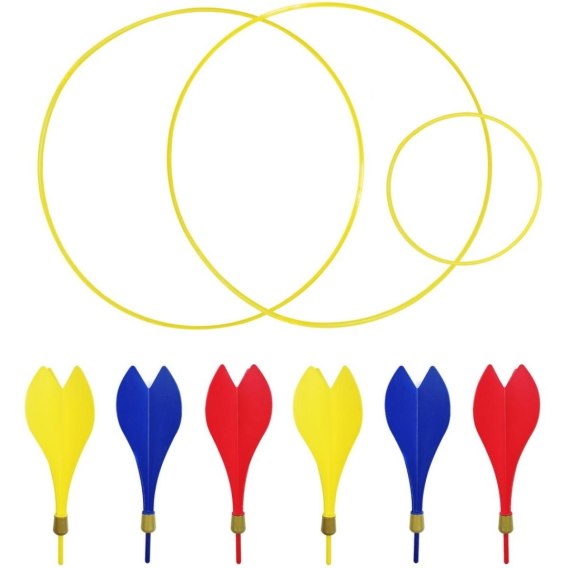 • W skład zestawu wchodzi: 3 obręcze, 6 rzutek