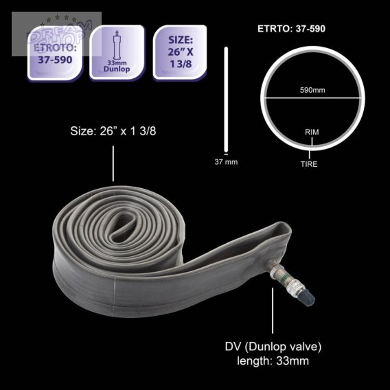 Dobra dętka to niezbędny element każdego roweru, nadaje kołu odpowiednią sprężystość. DĘTKA 26X1,3/8 DV BICYCLE GEAR pozwoli Ci odpowiednio skompletować wyposażenie Twojego roweru.