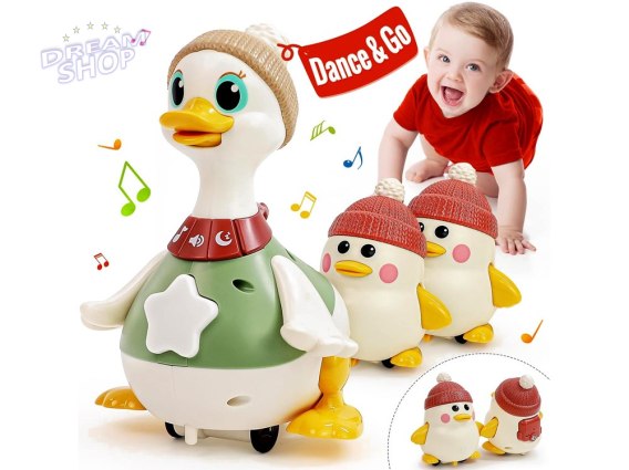 Zabawka ta to idealne rozwiązanie dla dzieci od 6 miesiąca życia, wesprze rozwój umiejętności raczkowania i chodzenia. Dzięki przyjemnej muzyce i zabawnym ruchom, kaczuszki przyciągają uwagę maluchów, zachęcając do zabawy i rozwijania wczesnych umiejętności motorycznych, takich jak rozciąganie, sięganie i raczkowanie.