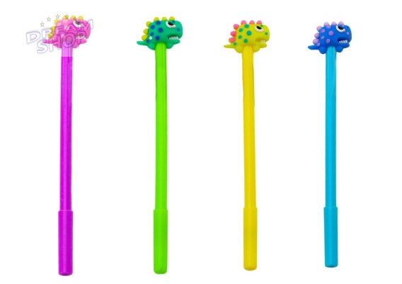Długopis Z Dinozaurem Zatyczka Czarny Wkład Mix Fioletowy Zielony  0.5mm