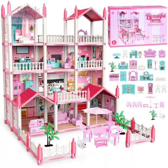 Piękny różowy domek willa z mebelkami - wieloelementowy zestaw zapewni mnóstwo kreatywnej zabawy każdej dziewczynce. Z pewnością nie zabraknie pomysłów na zabawę.