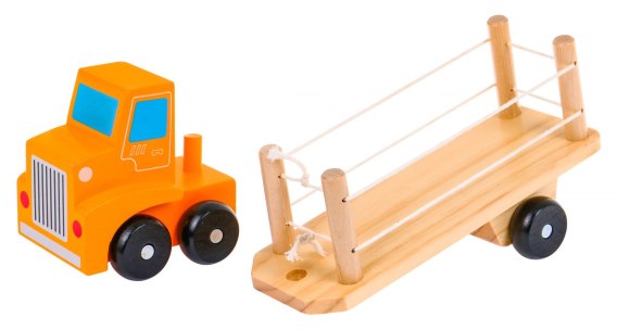Drewniana ciężarówka z klockami to zabawka bezpieczna dla maluchów już od 2-go roku życia. Ten zestaw to połączenie nauki z zabawą. Rozwija zdolności motoryczne, sprawność manualną, koordynację oko-ręka. Zestaw zawiera 20 drewnianych klocków z literami alfabetu oraz rysunkami. Po skończonej zabawie wszystkie klocuszki można ułożyć na lawecie ciężarówki.