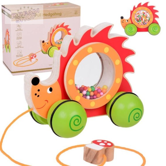 Drewniany jeżyk z kuleczkami do ciągnięcia - idealny towarzysz spacerów i pierwszych kroków!