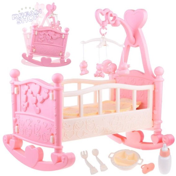 Duże łóżeczko kołyska dla lalki + karuzelka ZA4788