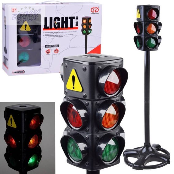 Znak drogowy sygnalizacja świetlna z 3 światłami w kolorze czerwonym, pomarańczowym i zielonym oraz efektem dźwiękowym będzie niezbędnym atrybutem do poznania zasad drogowych, nauki poruszania się na drodze, przejściu dla pieszych.
