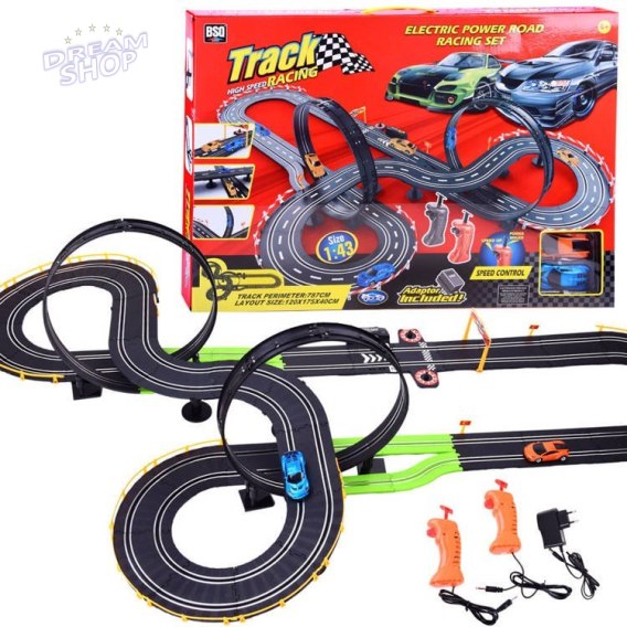 Okazały tor pozwoli na zabawę dwójce rajdowcom. Zestaw wykonany bardzo efektownie nie wymaga użycia baterii, pojazdy zasilane są za pomocą zasilacza. Gigantyczny tor odługość 787cm z dwoma dużymi pętlami, prostymi, zakrętami chronionymi przez bandy zapewni mnóstwo emocji małym i dużym fanom Formuły 1. Tot wyposażony w automatyczny licznik, który sumuje ilość przejechanych okrążeń, żeby nie było nie jasności kto wygrał. Sterowanie pojazdami odbywa się za pomocą dwóch pilotów, które zostały wyposażone w opcję dodawania gazu. Zestaw zawiera: