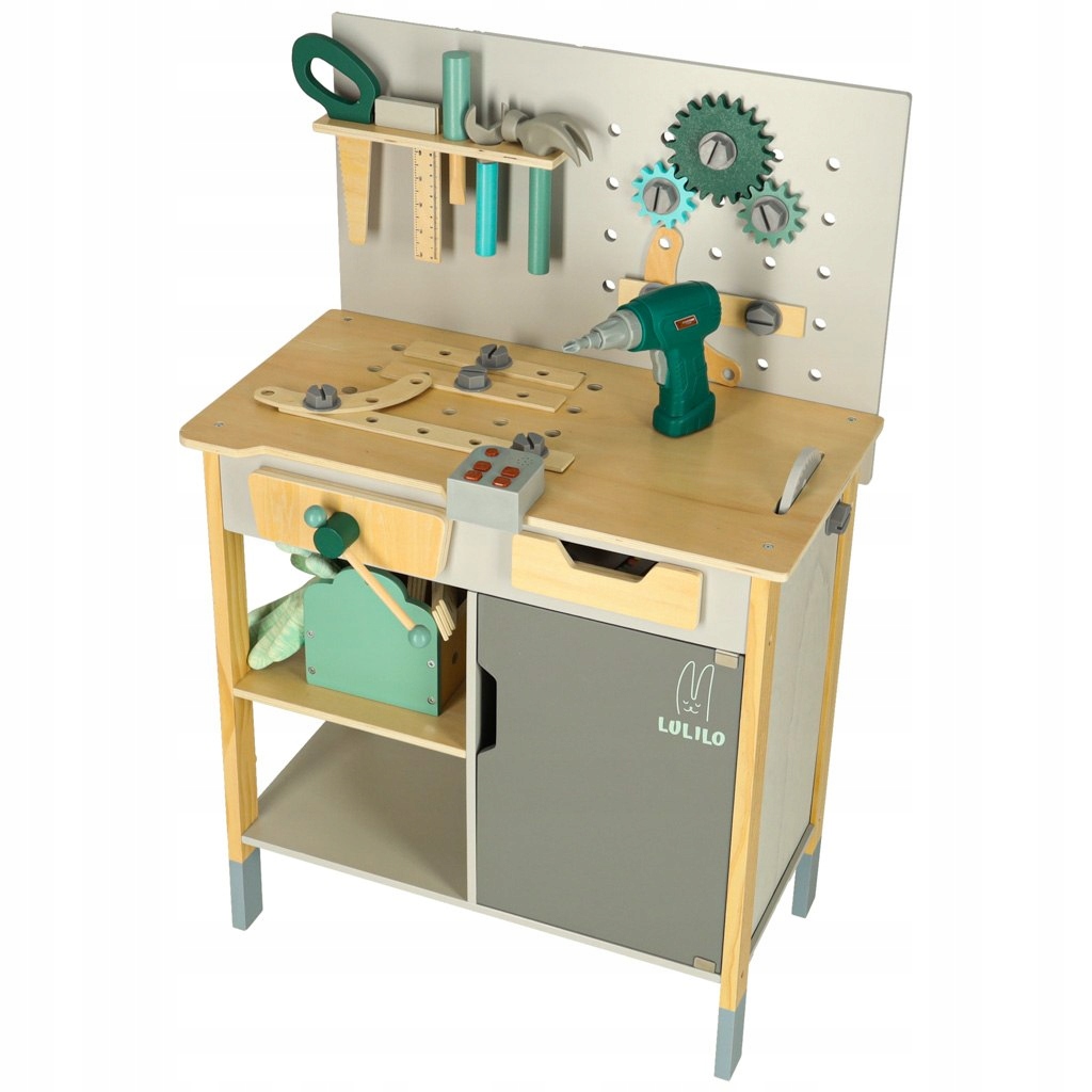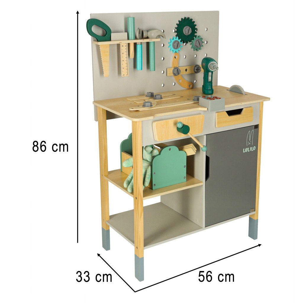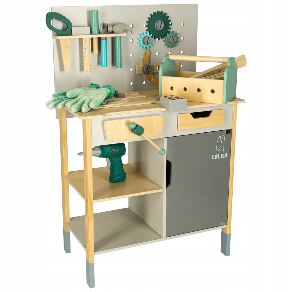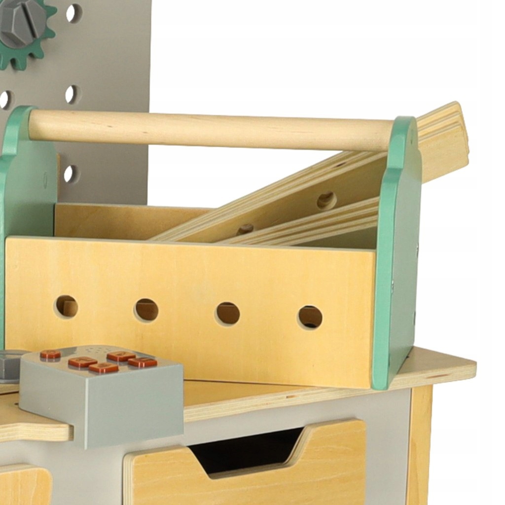 Duży drewniany warsztat z narzędziami XXL zestaw majsterkowicza 84 elementy
