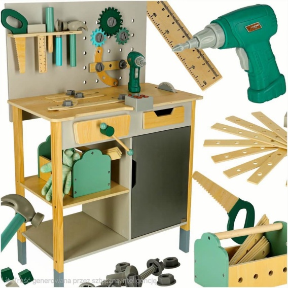 Zapewnia bezpieczne warunki zabawy - to dobry sposób na zapoznanie dziecka z wyposażeniem warsztatu w domu lub w szkole
