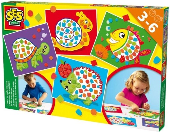Mięciutkie, piankowe kafelki i kolorowe obrazki ze zwierzaczkami zachęcą do pracy każdego malucha. Dziecko podczas wyklejania mozaiki poznaje kolory i kształty, rozwija swoja motorykę mniejszą oraz uczy się cierpliwości. Ukończone mozaiki będą piękną ozdobą dziecięcego pokoju. Zestaw zawiera: 4 plansze do wyklejenia, kolorowe i wielokształtne piankowe kafelki. Zabawka odpowiednia dla dzieci od 3 roku życia. Wyprodukowano w Holandii.
