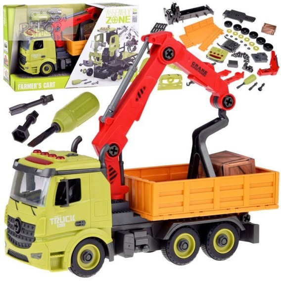 Budowlane auto dźwig zapewni małym miłośnikom tych pojazdów dużą frajdę i wiele godzin fantastycznej zabawy. Samochód został wykonany w całości z plastiku w żywych kolorach. Pojazd posiada podnoszone obrotowe ramię żurawia oraz otwieraną burtę na przyczepie. Ciężarówka wyposażona została w efekty dźwiękowe co na pewno uatrakcyjni zabawę, ale to nie wszystko dźwig można rozłożyć na elementy pierwsze za pomocą załączonego śrubokręta o różnych wymiennych końcówkach, a potem samodzielnie go skręcić od podstaw, to nie lada wyzwanie, które będzie wymagać od małego konstruktora cierpliwości. Pojazd porusza się za pomocą napędu typu friction, który sprawia, iż poprzez napędzenie ciężarówka sama porusza się do przodu na płaskiej powierzchni.
