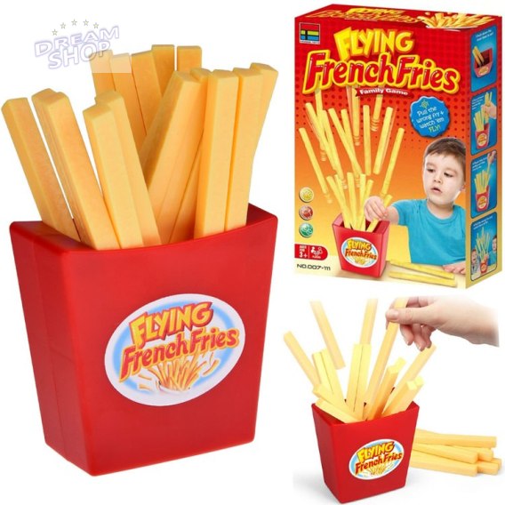 Latające frytki to pełna emocji, zabawna gra dla całej rodziny! Aby wygrać trzeba trzymać nerwy na wodzy i mieć odrobinę szczęścia. Ale uwaga, jeden fałszywy ruch i frytki będą...latać.