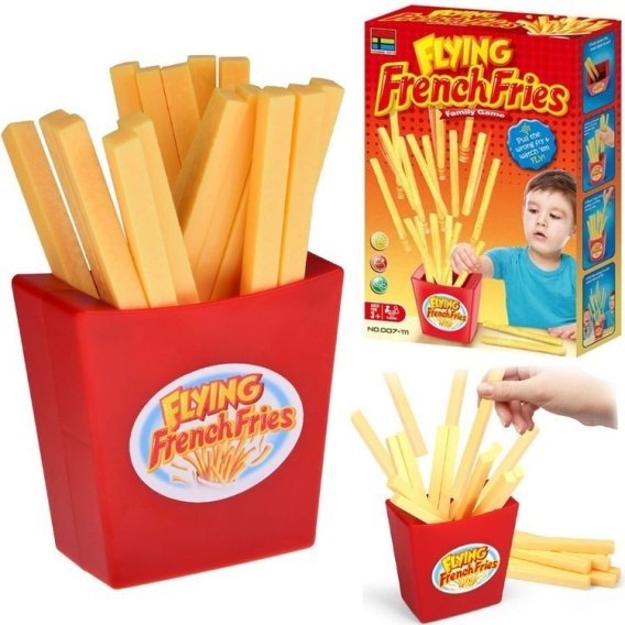Latające frytki to pełna emocji, zabawna gra dla całej rodziny! Aby wygrać trzeba trzymać nerwy na wodzy i mieć odrobinę szczęścia. Ale uwaga, jeden fałszywy ruch i frytki będą...latać.