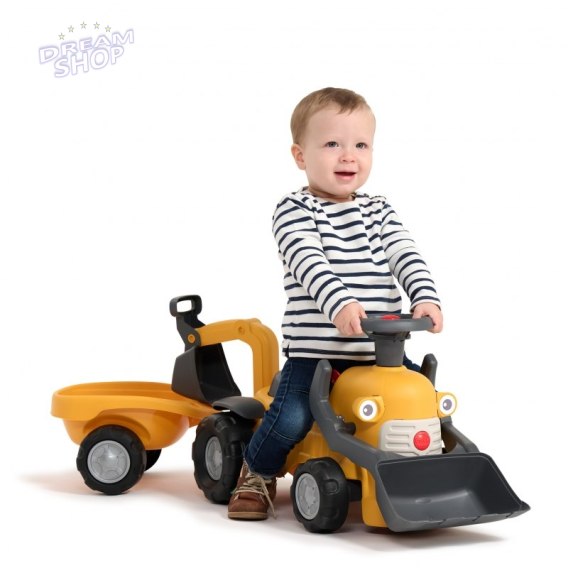 Jeździk‑koparka Marcel marki FALK to pierwszy kompaktowy pojazd z działającą łyżką czołową, kierownicą z klaksonem, tylną koparką i odczepianą przyczepą, który zaprasza do zabawy w domu i na dworze już od 12 miesięcy. Stabilna konstrukcja i przemyślane detale - jak klikający kluczyk, skrętna kierownica i schowek pod siedziskiem sprawiają, że każda przejażdżka łączy ruch z odgrywaniem ról.