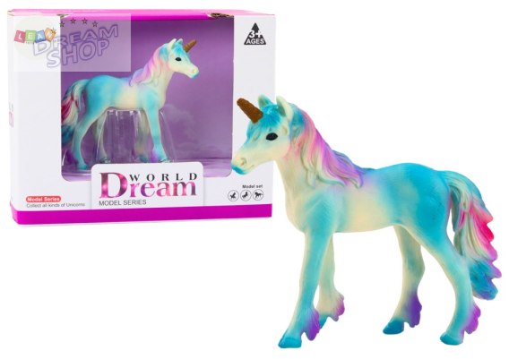 Figurka jednorożca w niebieskim kolorze z kolorową grzywą i ogonem, wykonana z solidnego i trwałego materiału, zachwyca realistycznymi detalami. Może być zarówno elementem zabawy jak i uroczą ozdobą dziecięcego pokoju czy cennym elementem kolekcji.