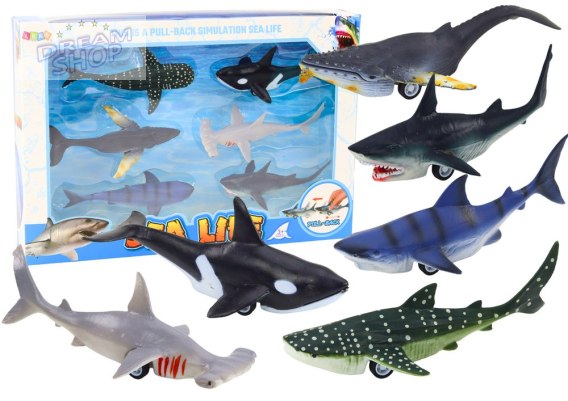 Figurki Pojazdy Zwierzęta Morskie Napęd Frykcyjny Rekin Orka 6 Szt