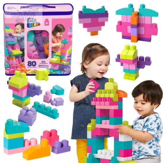 Kreatywność nie zna granic z zestawem 80 dużych klocków Mega Bloks w przepięknych kolorach! Dzięki tym klockom Twoje dziecko może budować, układać i odkrywać nieskończone możliwości - od wysokich wież i magicznych zamków po śmieszne zwierzątka i inne fantazyjne konstrukcje. Duże klocki, idealne dla małych rączek, są łatwe do łączenia i rozdzielania, co wspiera rozwój kluczowych umiejętności podczas zabawy. Po skończonej zabawie wszystko można szybko i wygodnie schować do dołączonej torby.