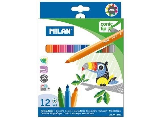 Flamastry ze stożkową końcówką 12 kolorów MILAN