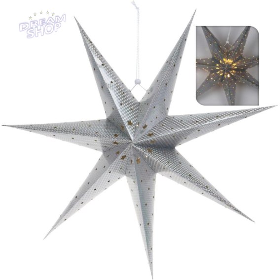 GWIAZDA DEKORACYJNA PAPIEROWA Z PODŚWIETLENIEM LED 60CM SREBRNY