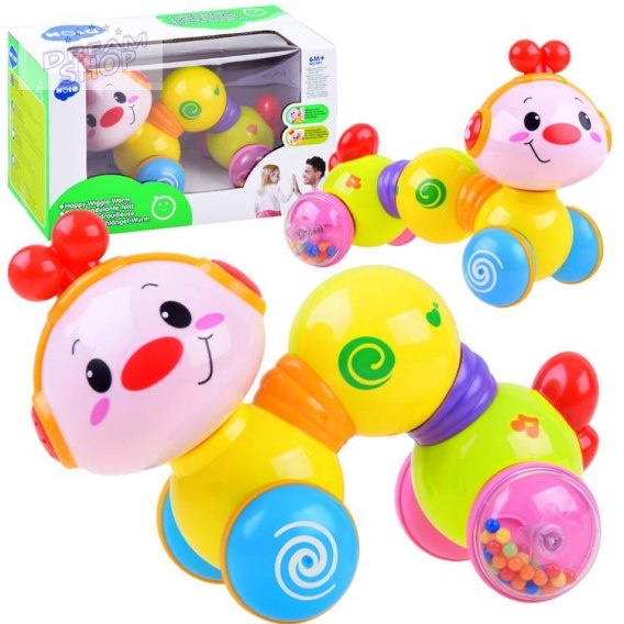 Poznaj idealnego towarzysza zabaw raczkującego dziecka! Interaktywna słodka mobilna gąsieniczka jeżdżąca na kółkach. Ekscytująca akcja i zabawne dźwięki zachęcają dziecko do podążania za zabawką i do coraz śmielszego raczkowania. Interaktywna zabawka z efektem muzycznym, zapewni dziecku wiele przyjemniej zabawy. Po naciśnięciu grzbietu zabawki, zabawka zostaje wprawiona w ruch, porusza się po płaskiej powierzchni.