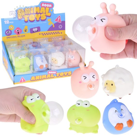ciekawy i zabawny design- gniotek w postaci zwierzątka wzbudza zainteresowanie dziecka. Po ściśnięciu boków gniotka zwierzątko dmucha duży balon, co wygląda na prawdę zabawnie. Stworek ma sympatyczną twarz i wykonany jest z przyjemnej w dotyku, miękkiej gumy