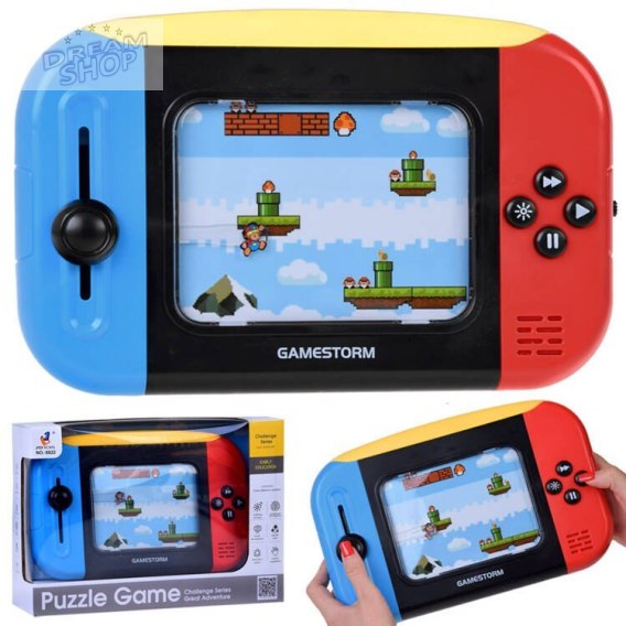 Posiada wbudowaną grę z przygodami małego bohatera pokonującego przeszkody. Konsola posiada nowoczesny design, trój-kolorową obudowę, oraz duże przyciski. Po włączeniu zabawki i uruchomieniu gry przyciskiem PLAY (trójkąt) grafika na taśmie zacznie się przesuwać, a zadaniem naszego bohatera jest omijanie przeszkód takich jak kominy, grzyby czy ceglane mury. Bohaterem porusza się góra/dół za pomocą przesuwanego guzika po lewej stronie. Wbudowany głośnik pozwala jeszcze bardziej wczuć się w akcję przedstawionej gry za pomocą dostosowanych efektów dźwiękowych. Przyciski pozwalają również stopować grę jeśli gracz potrzebuje chwilę przerwy, czy też pozwalają na zwiększenie prędkości co buduję większą dynamikę rozgrywki. Dodatkowo ekran jest podświetlany, więc z konsoli można komfortowo korzystać również wieczorem.