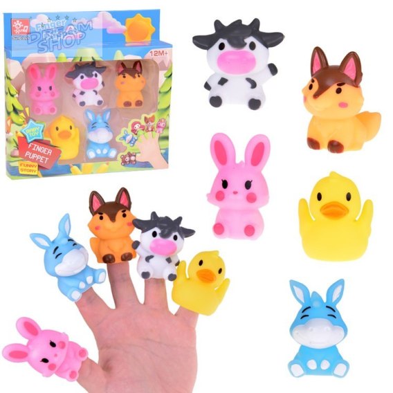 Zestaw 5 gumowych zwierzątek z farmy na palec - kreatywna zabawa od najmłodszych lat!