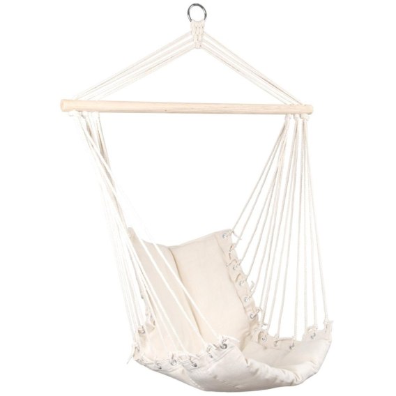 Wystarczy zamontować odpowiedni hak podpiąć hamak i rozpocząć relaks. Wysokiej jakości materiał, wszyte w oparcie i siedzenie poduszki z pianki i solidna konstrukcja, o nośności do 120 kg zapewnią Ci bezpieczeństwo oraz niezwykłą wygodę.