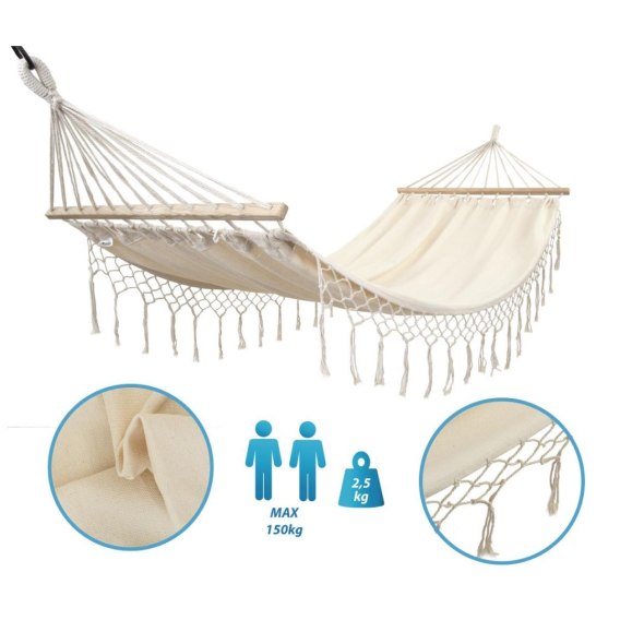 HAMAK OGRODOWY 2 OSOBOWY 200X150CM Z DRĄŻKIEM I Z FRĘDZLAMI MIAMI ECRU