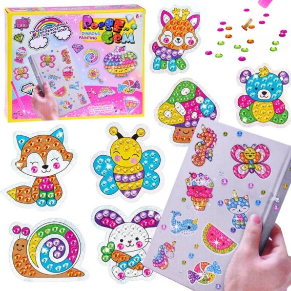 Haft diamentowy zestaw kreatywny NAKLEJKI ZWIERZĄTKA to najmodniejsza kreatywna zabawa dla dzieci. Zestaw pozwala na stworzenie 12 pięknych naklejek z bajecznie kolorowych diamencików. Zabawa polega na dobraniu odpowiednich kolorów diamencików i przeniesienie je na szablon z klejem za pomocą specjalnego długopisu. Po ułożeniu elementów uzyskujemy piękną kolorową ozdobę. Za pomocą stworzonych bajecznych, błyszczących naklejek można ozdobić ulubiony zeszyt, teczkę, pamiętnik lub album ze zdjęciami. Układanie maleńkich elementów jest bardzo wciągające, przy okazji ćwiczy koordynację ręka-oko, uczy cierpliwości, pobudza kreatywność dziecka.