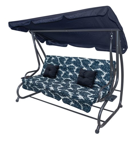 Huśtawka Ogrodowa Siedzisko Textylina 2x1 Wzór Liście Granatowa