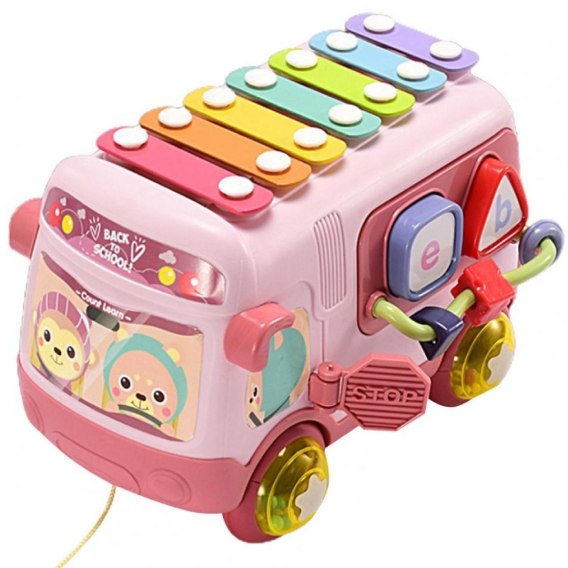 Interaktywny autobusik z sorterem, cymbałkami i grzechotkami to świetna edukacyjna zabawka dla Twojego Malucha, która rozwija jego zdolności manualne.