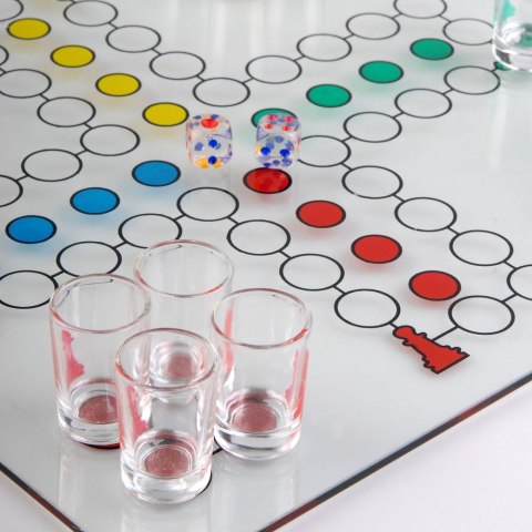 Skład zestawu: plansza, 16 x kieliszek, 2 x kostka do gry.